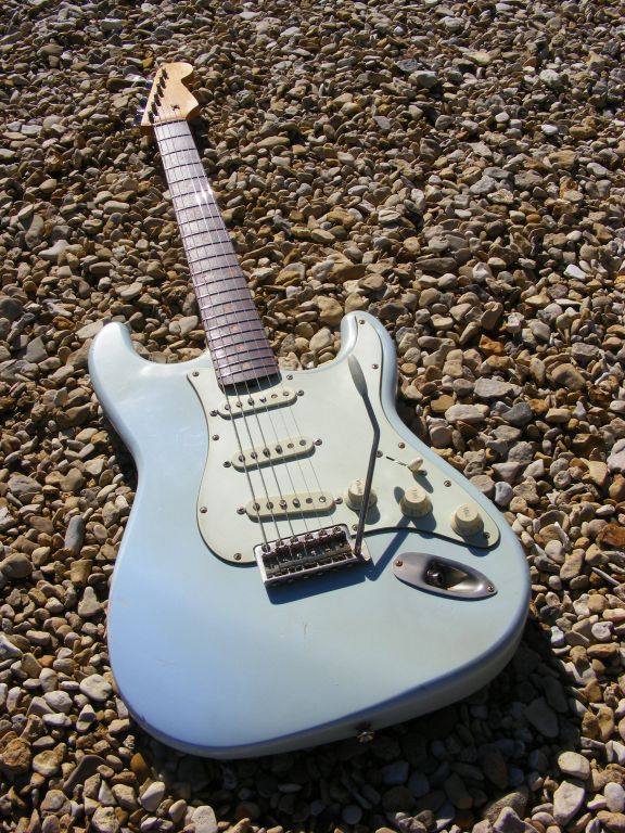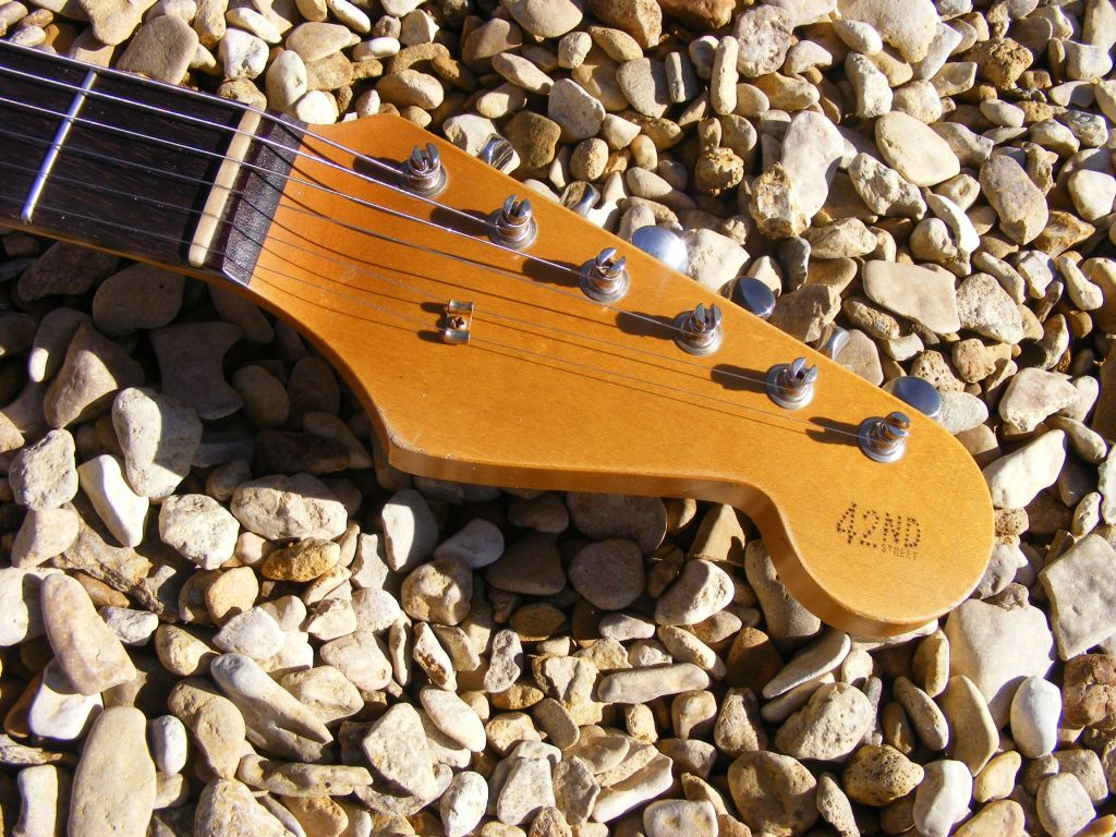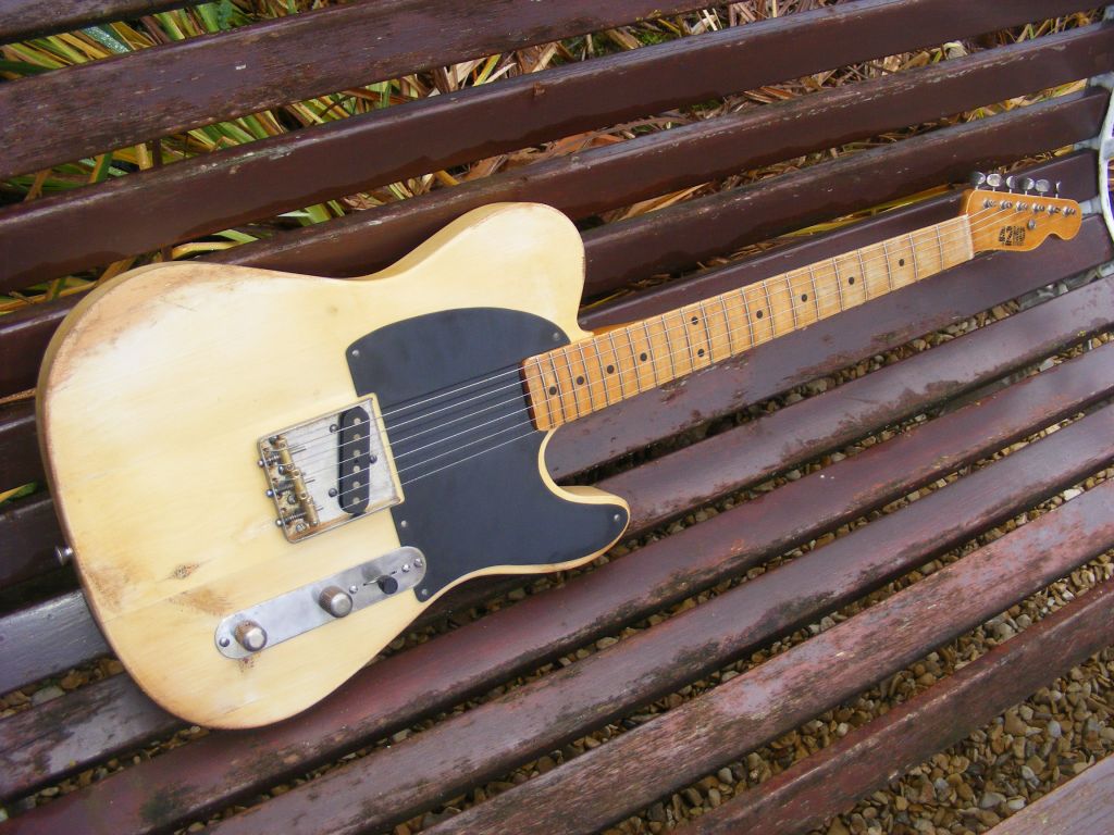Another Broadway model, this time '55 spec.....pale blond nitro, faded with light ageing with Radioshop staggered '58 handwound pickups. Nice and light at 6 pounds 11 ounces.