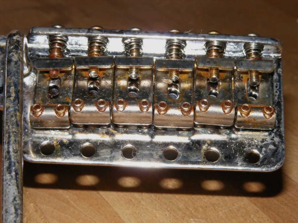 - Fender stamped bridge with brass saddles and mounting screws